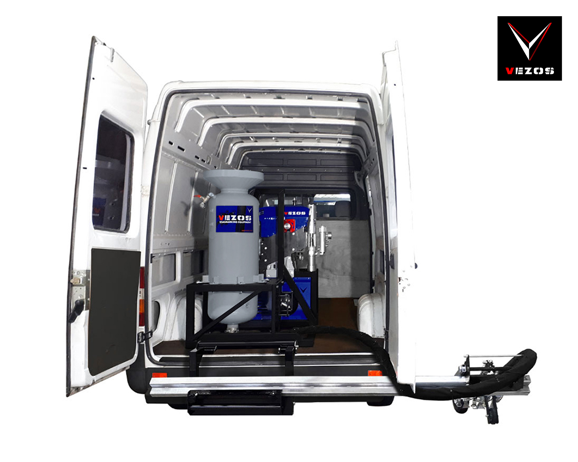 VEZOS ROADMASTER A2.5 Line Striping Van is a compact and flexible road marking solution designed for contractors operating in urban and confined environments. Built on a fully retractable palletized system, it easily adapts to van platforms and features a foldable arm bracket, manual/automatic airless spray guns, and a pressurized glass bead system. Powered by reliable HYDREX hydraulic technology, the ROADMASTER A2.5 Van delivers professional line striping performance with easy operation, mobility, and upgrade potential.